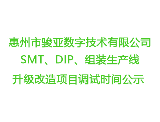 惠州市駿亞數(shù)字技術(shù)有限公司SMT、DIP、組裝生產(chǎn)線升級改造項(xiàng)目調(diào)試時間公示